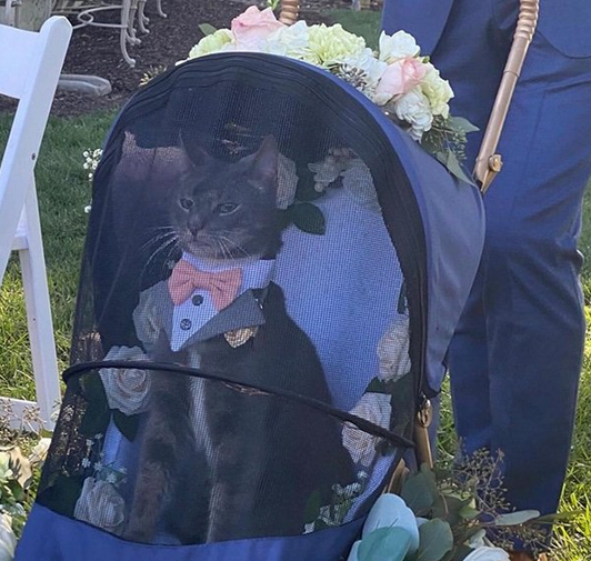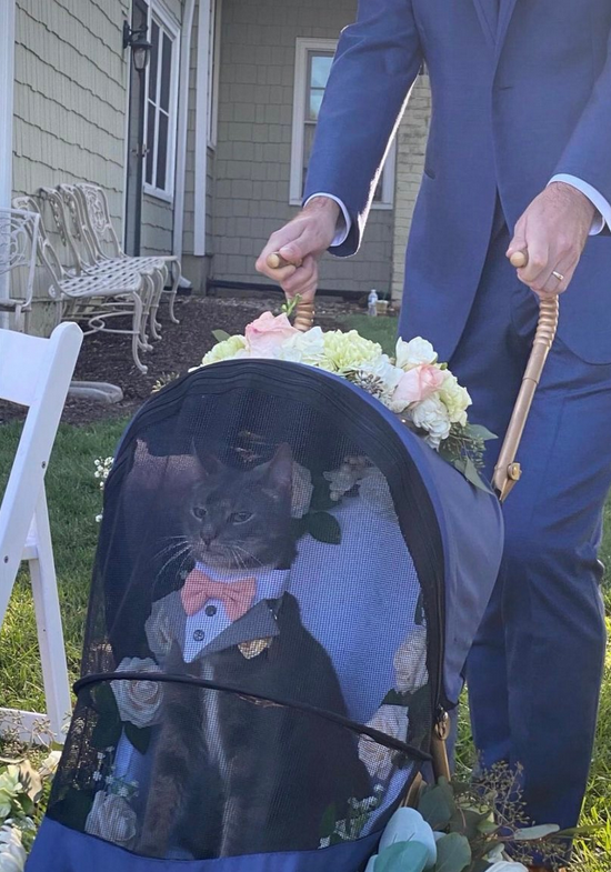 优雅的猫咪在主人的婚礼上 它已经知道自己有多拽了~