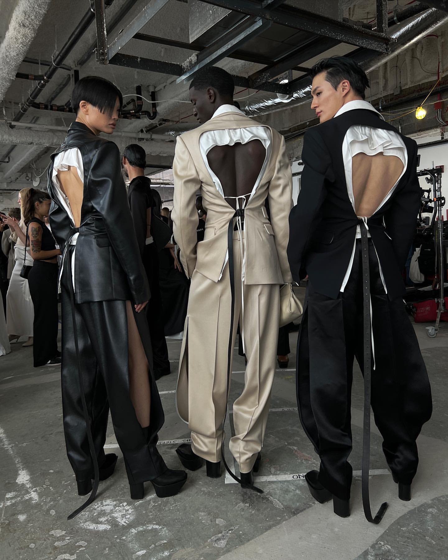 steph shiu, ibby sow, and lee jeno wearing peter do ss23 for nyfw
